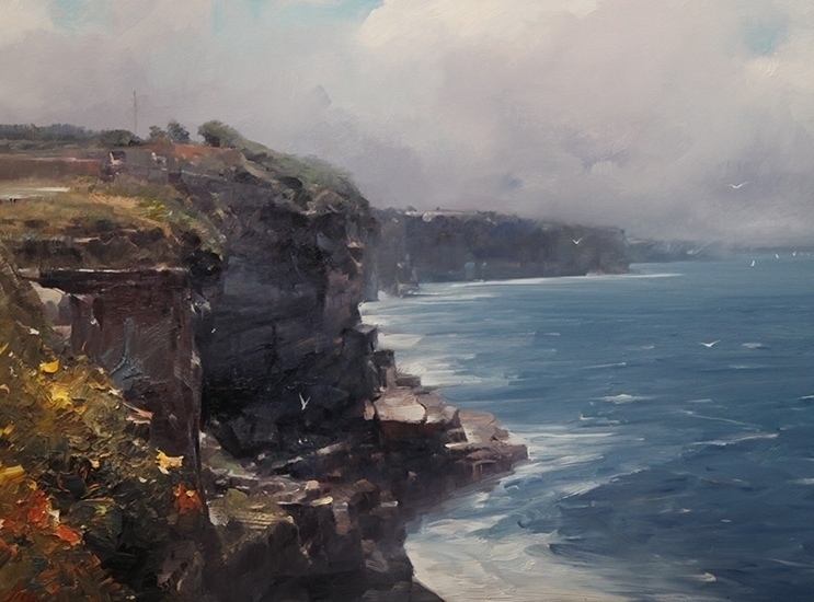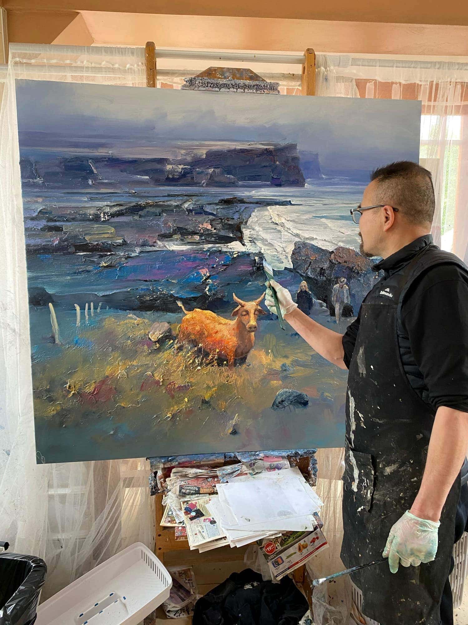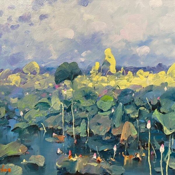 “I look towards combining elements of bold Chinese calligraphic brush strokes and western oil painting techniques to manipulate my imaginings of the landscape. In my works, my mission is to showcase the dichotomies of the wild tenacity of nature and simple, calm milieus of everyday life. For me, simply capturing the contrast, light and depth is everything. I only hope to transform a pure scene from mother nature into something that encapsulates a sense of lasting impact, leaving the audience with more to desire.” – Ji Chen