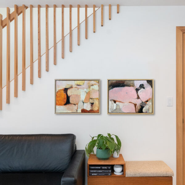 “My artworks are created following sketches on our acreage of virgin bushland on the outskirts of the Southern Highlands of New South Wales. My studio overlooks regenerating bushland and the slow return of fauna. Oil paints and glazes are applied in layers attempting to capture not only the recovery, but the history of trauma. This has become essential in my mode of existence since the devastation of losing everything in a bushfire; seeping into my heart and rationale. The paintings, on canvas, are simultaneously philosophical and literal. My intention is to create ambiguous organic forms. The ambiguity opens diverse interpretations”.