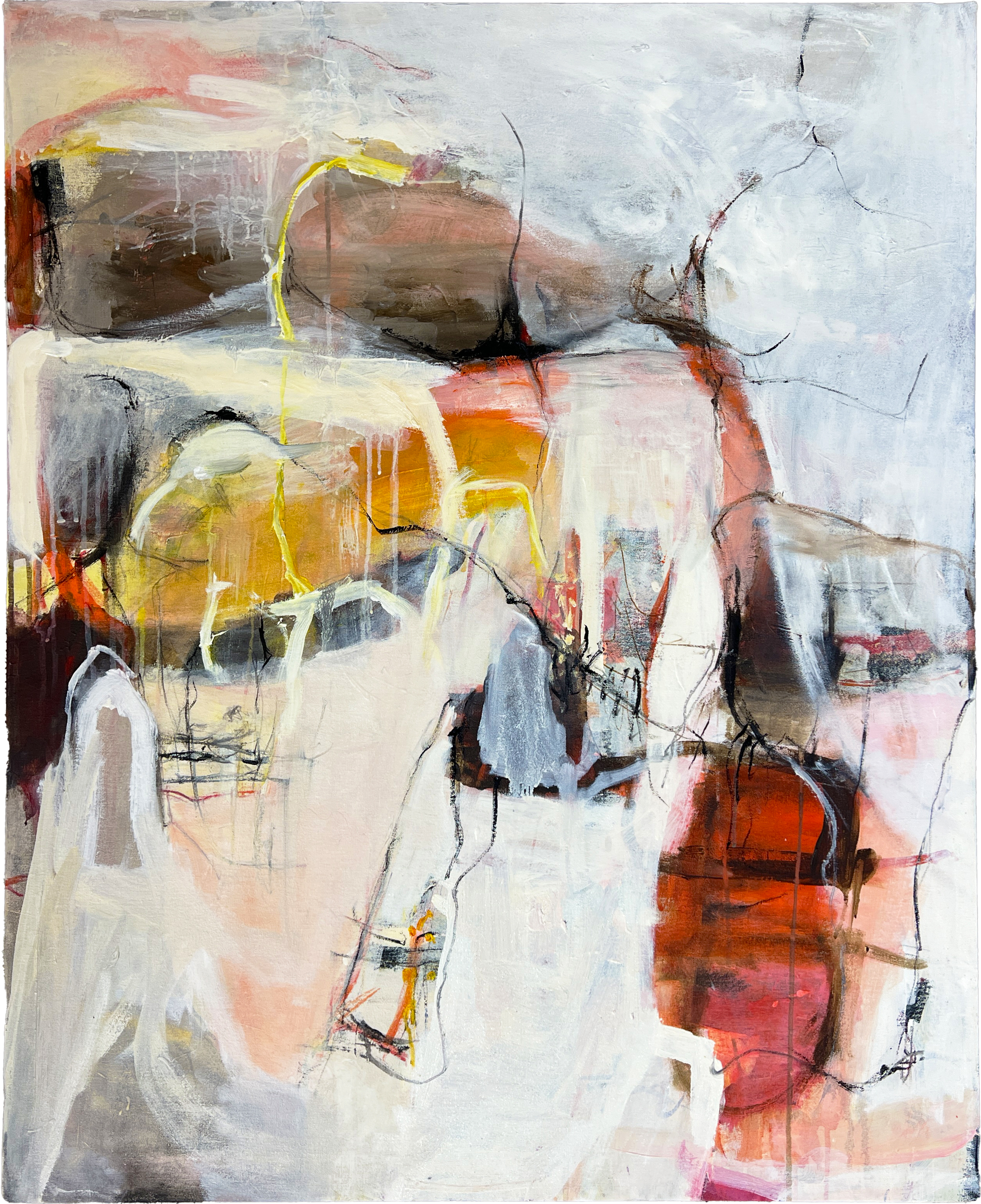 “This body of work could be described as whimsical yet solemn, in an abstract expressionist style”.