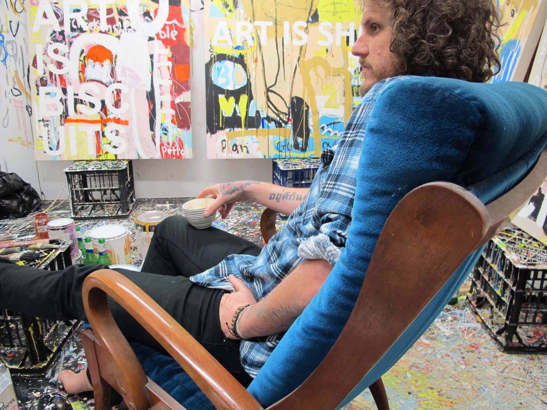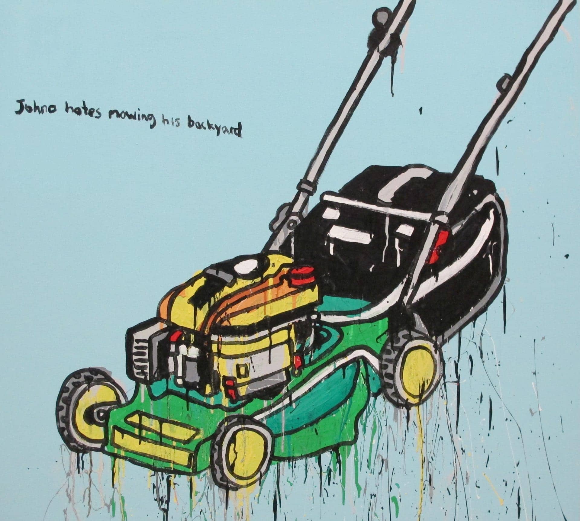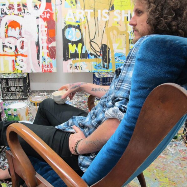 Nomadic by nature, Nigel draws deeply from travel and lived experience, transforming the visual language of everyday life into bold, high-energy compositions. Influenced by American abstraction and 1960s pop culture, his paintings rework mass media, signage, tools and suburban narratives into layered works that are at once playful and socially perceptive. Humour and immediacy invite the viewer in, while beneath the surface his work reflects on identity, labour and the shared rhythms of contemporary life.