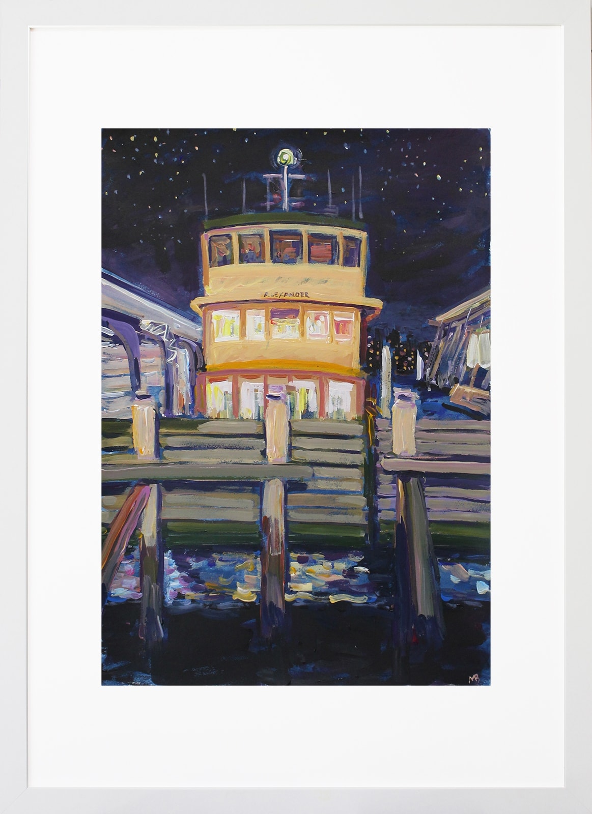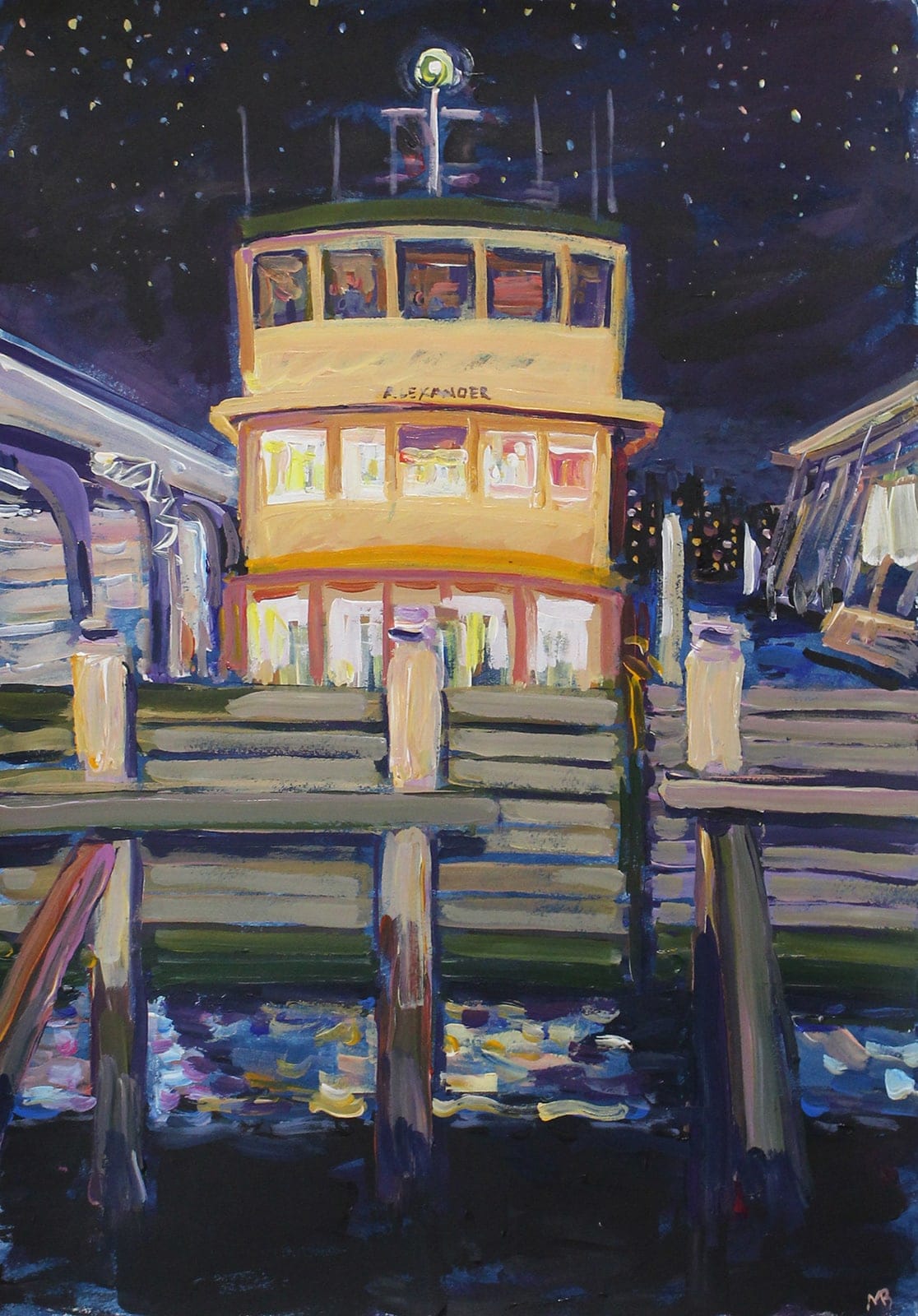 In her work Megan pays homage to beloved Sydney artist, Peter Kingston, who had a deep love for Sydney Harbour and its ferries.