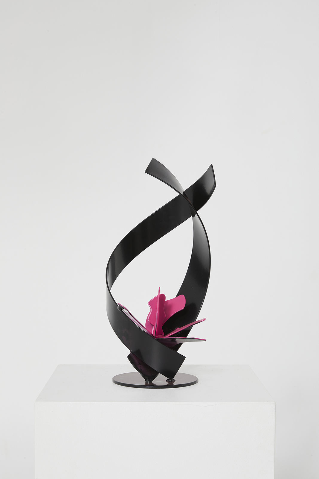 Jenny Green’s sculptures are typically abstract and usually influenced by the figure. While the media she uses (steel, bronze and resin) may be industrial, her sculptures are light and airy. Her intent to capture an instant or a feeling is reflected in the tension between space and material. She uses lines, curves, shapes and colour to explore movement and emotion. The results are lyrical yet industrial, ‘drawings in space’.