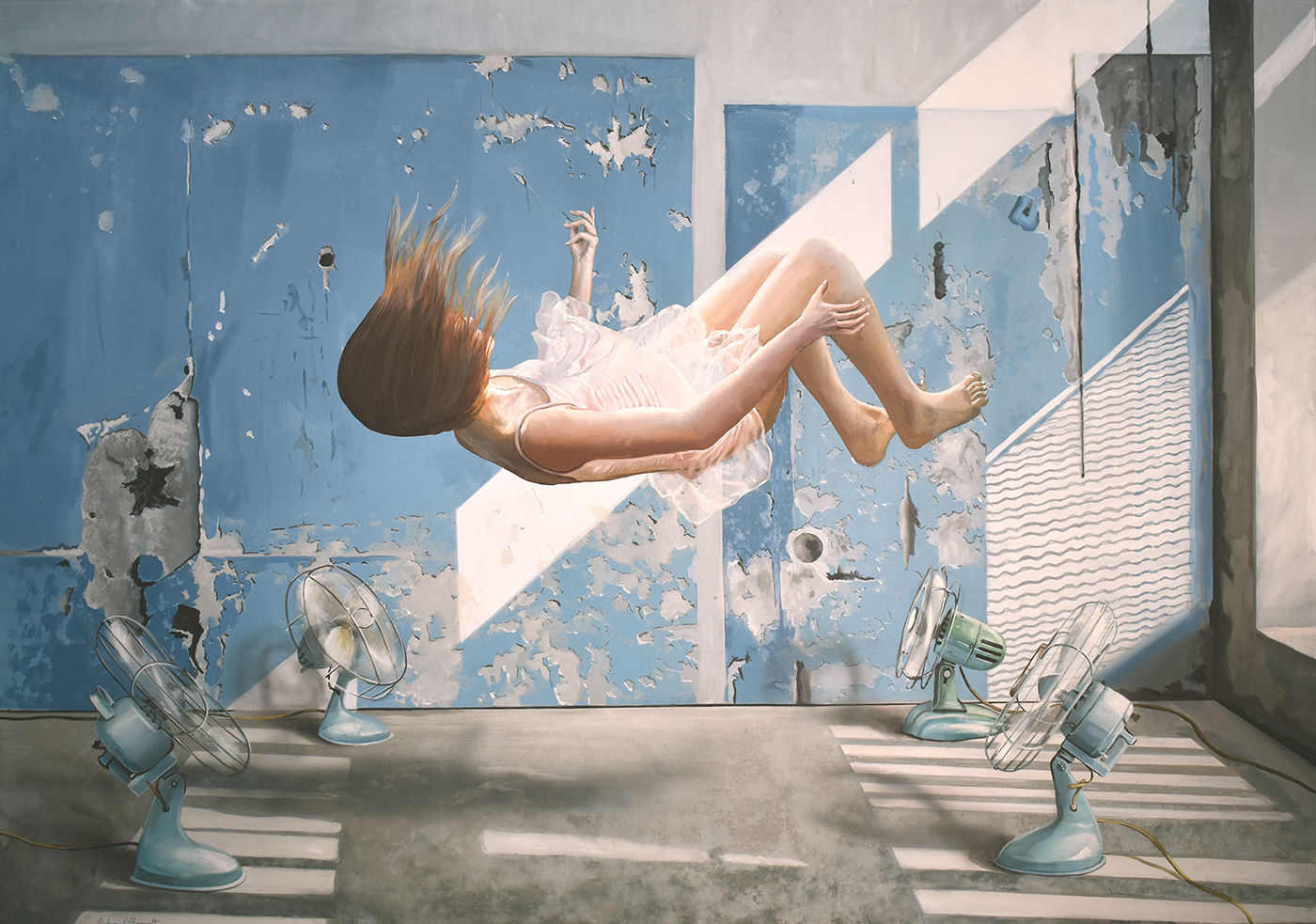 Andrew’s works delve into the imagination, melding the conscious with a dream-like surreal subconscious. Rendering in a hyper-realistic style everyday objects, wildlife and sections of landscape are incorporated and placed in a manner that the unexpected becomes the expected.