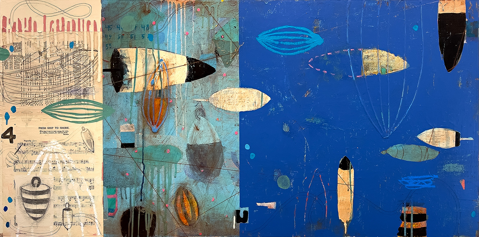 These paintings honour the ocean and land while bringing special attention to the peace and serenity of the underwater world. The abstract and expressive nature of Joie’s work comes directly from her experience of being in the natural world.