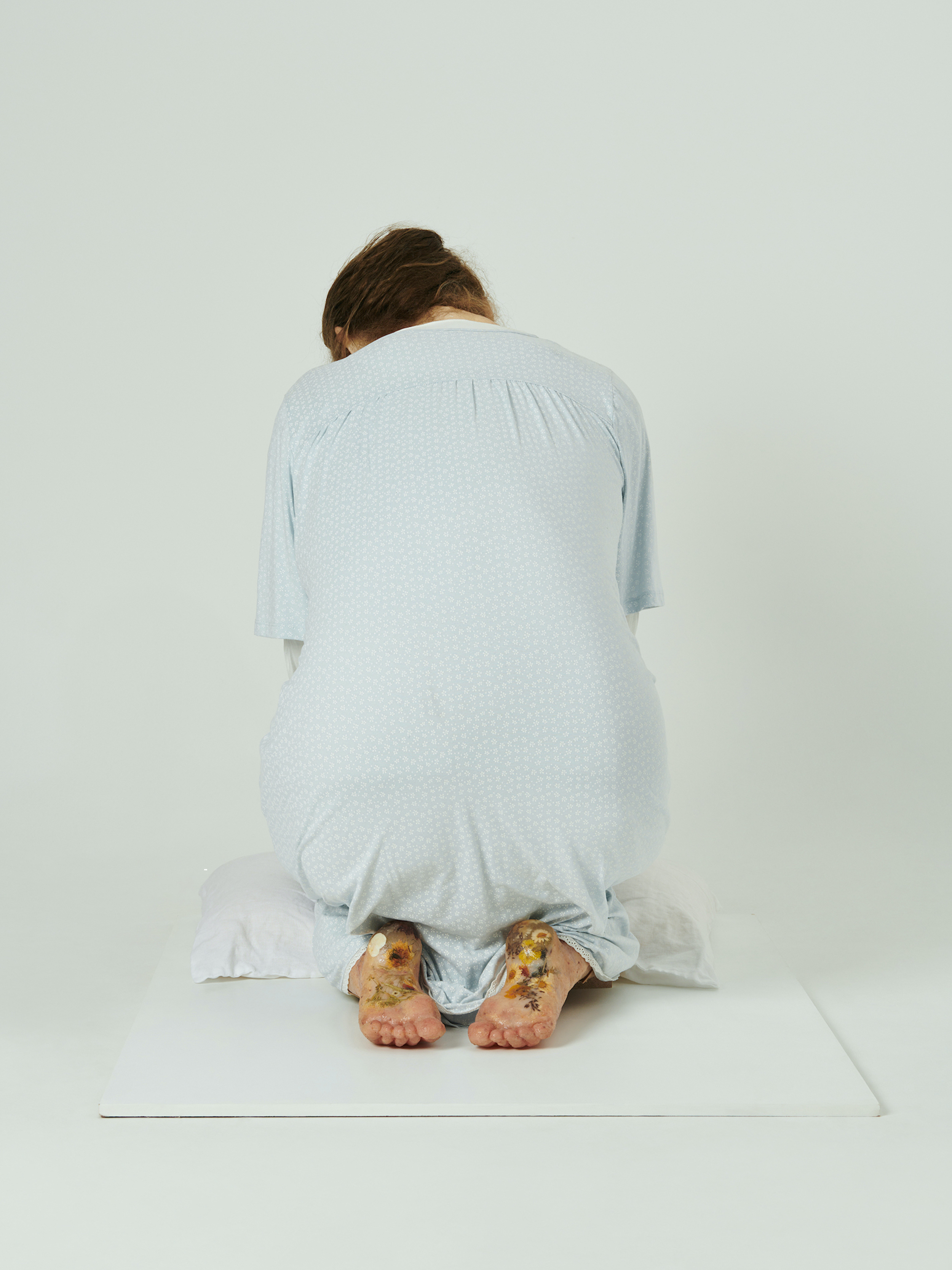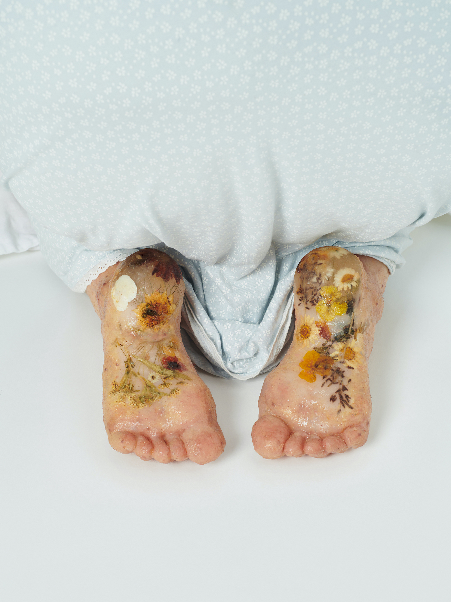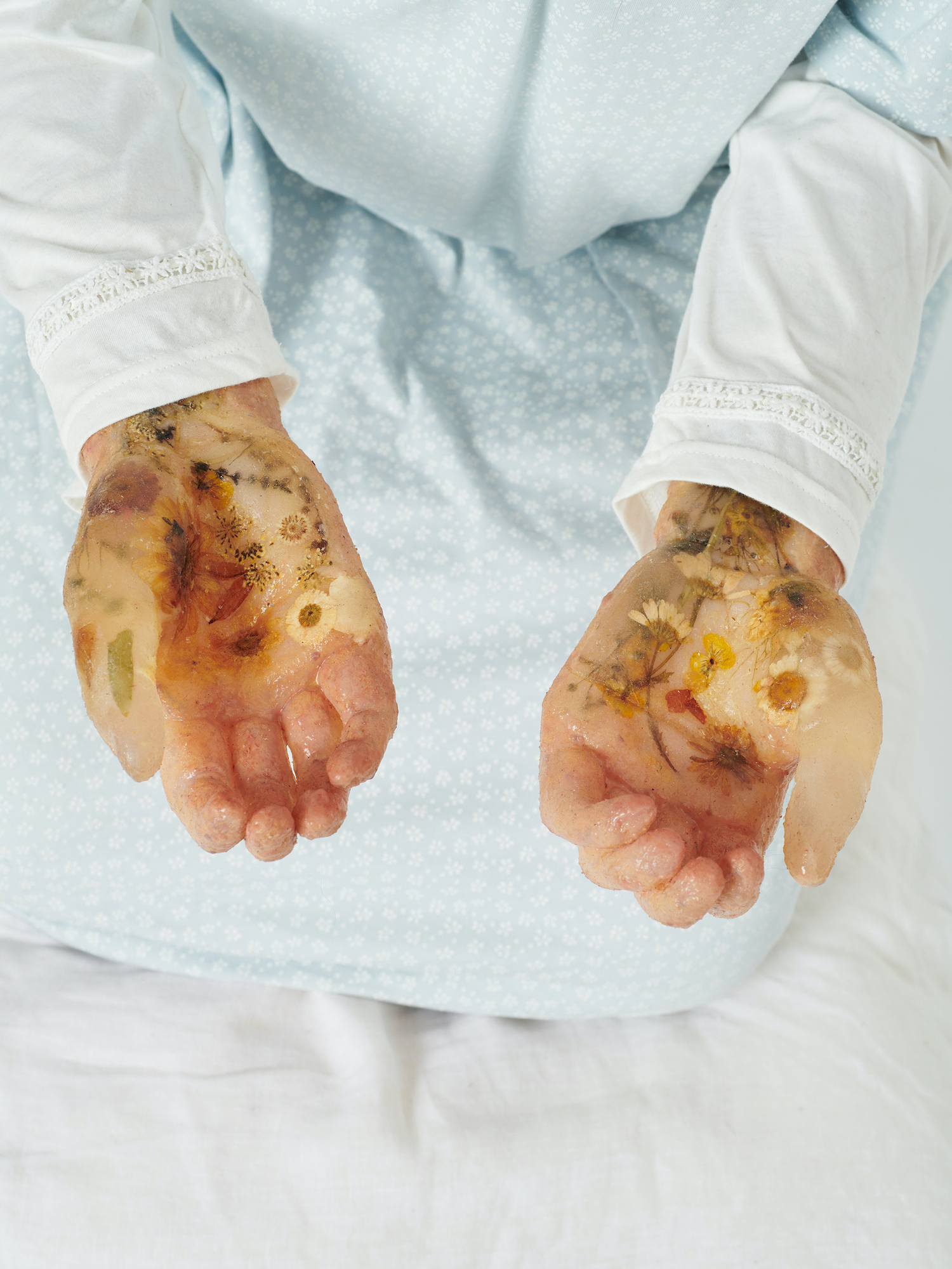 silicone, mohair, dried flowers and resin