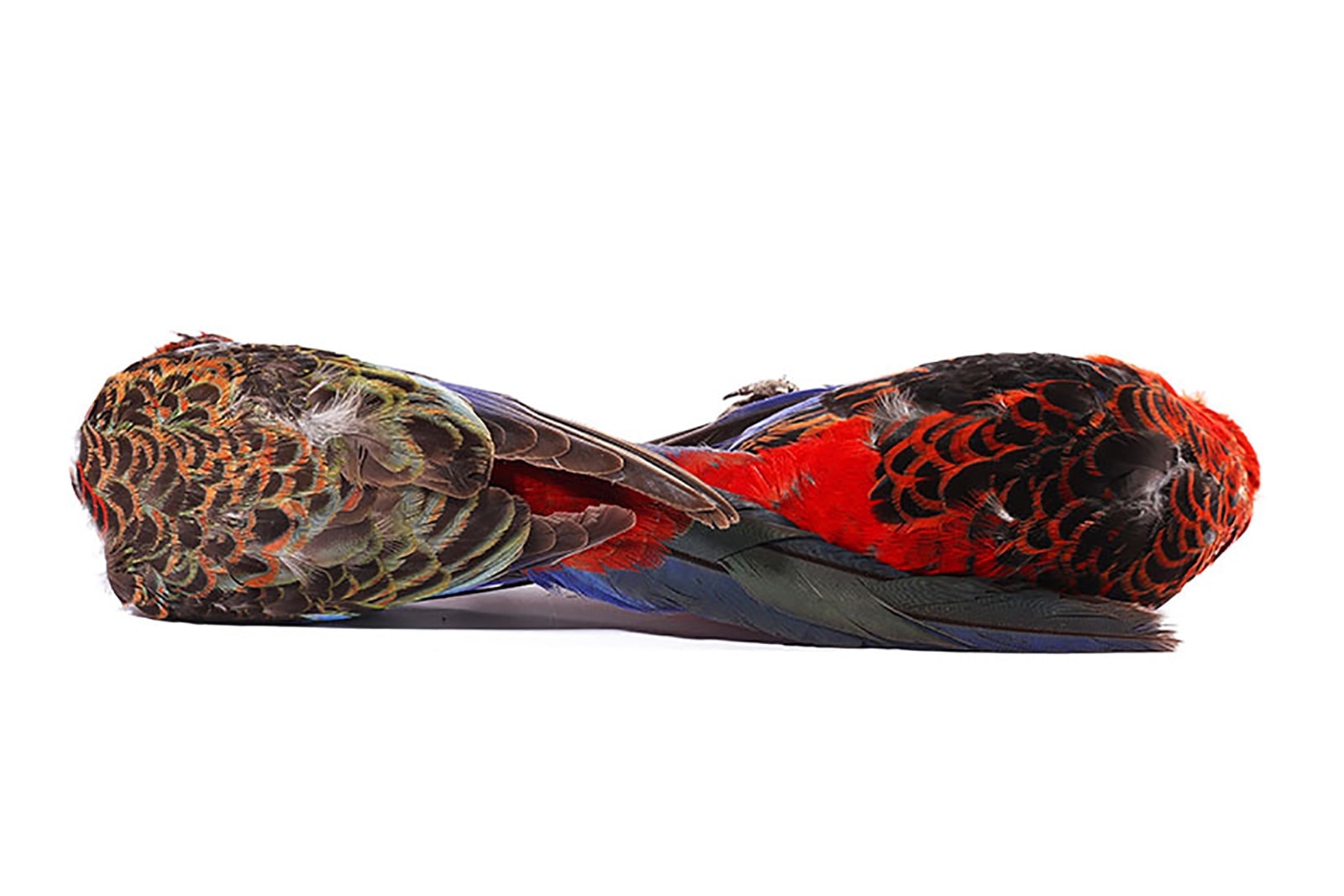 ”My subjects although deceased possess a life and personality of their own. These lovely birds were gifted to me as a pair and so I wanted to capture the beauty, affection and playful nature of these two Australian Rosellas named Rosie and Rosamund.” – JESS LEONARD