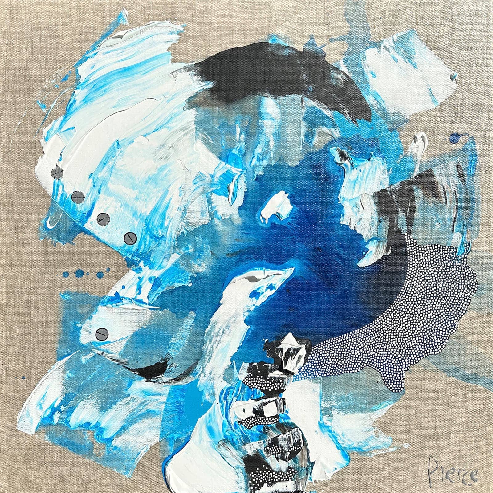 50.5 x 50.5cm acrylic impasto and ink on canvas