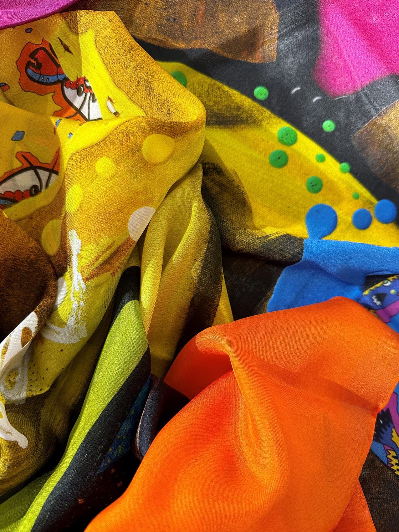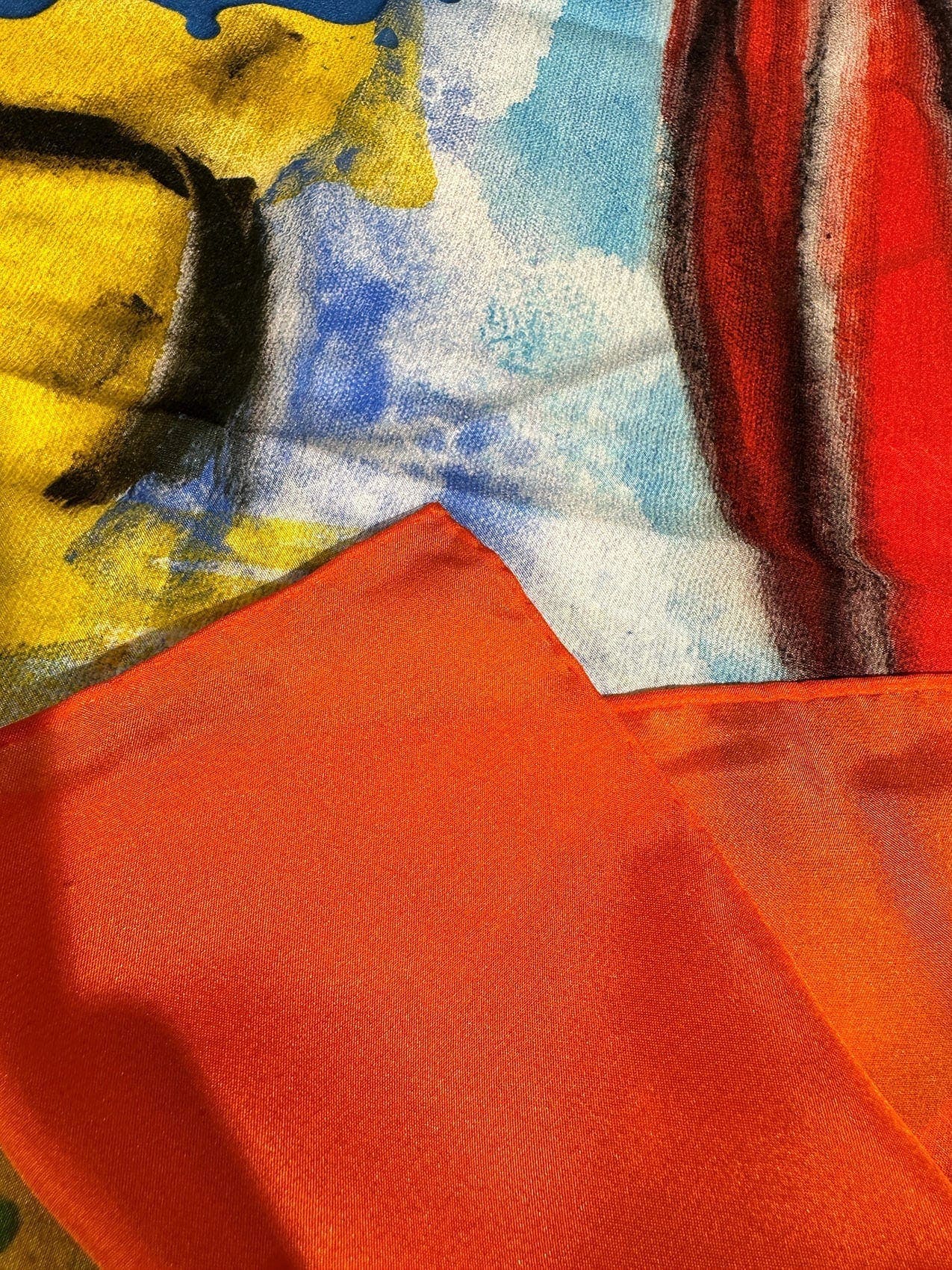 Made with 100% silk habotai and finished with a hand-rolled edge this luxurious scarf design comes from an original Rebecca Pierce artwork titled ‘Stonehenge’. The painting was inspired by a trip Rebecca took to the eerie, ancient and fascinating Glass House Mountains in Queensland, Australia. This particular work was selected for a scarf design due to its saturated, contrasting colours, engaging subject and 3D elements when printed onto silk, making for a unique and versatile wearable art piece.