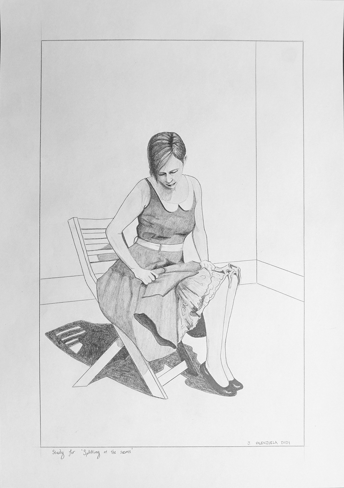 Study sketches are created before J begins to paint a work on canvas. Through these study sketches, we gain more insight into J’s painting process and view first-hand the development and evolution of his artist’s practice.