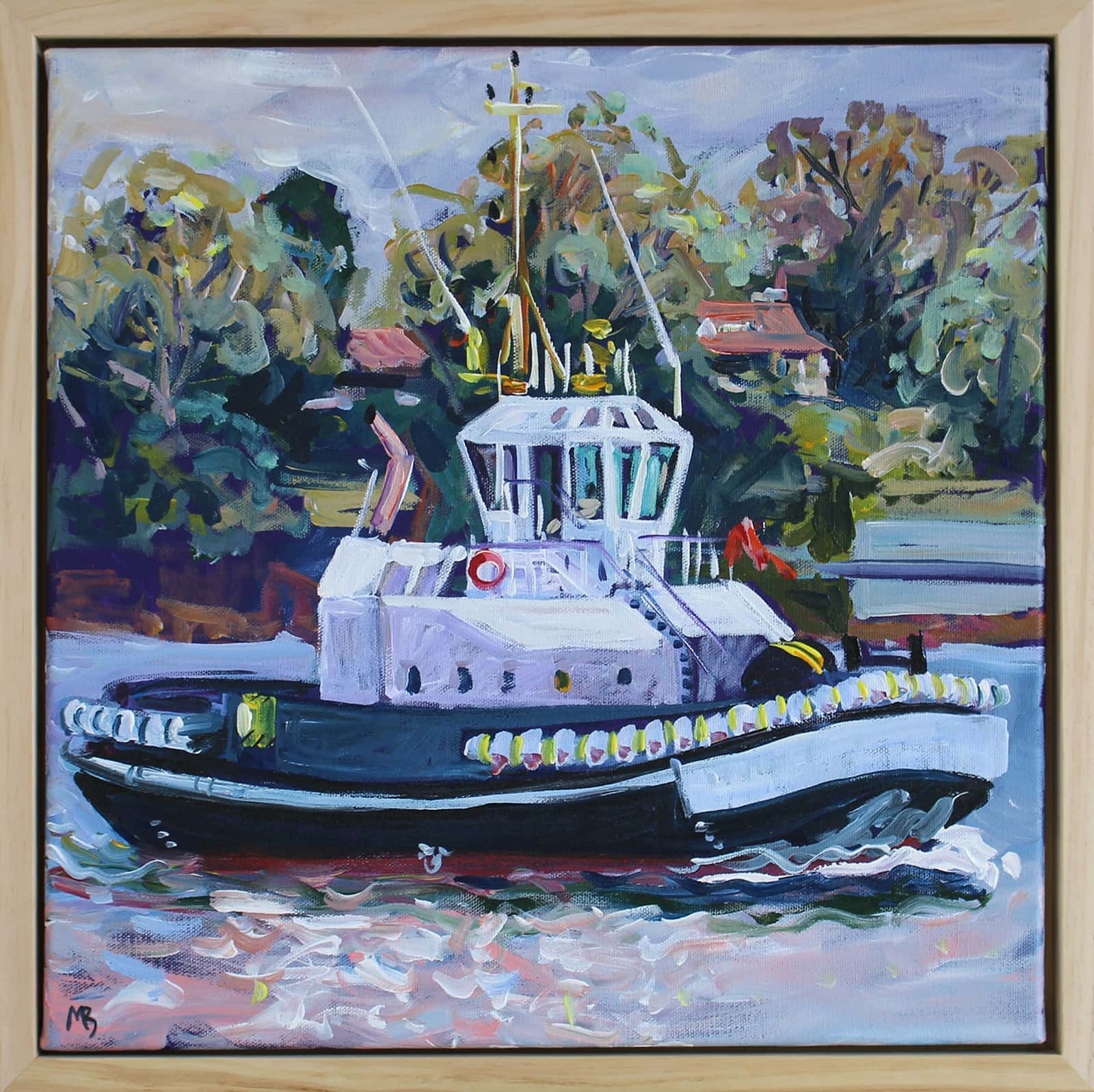 40 x 40cm, 44.5 x 44.5cm framed in natural timber